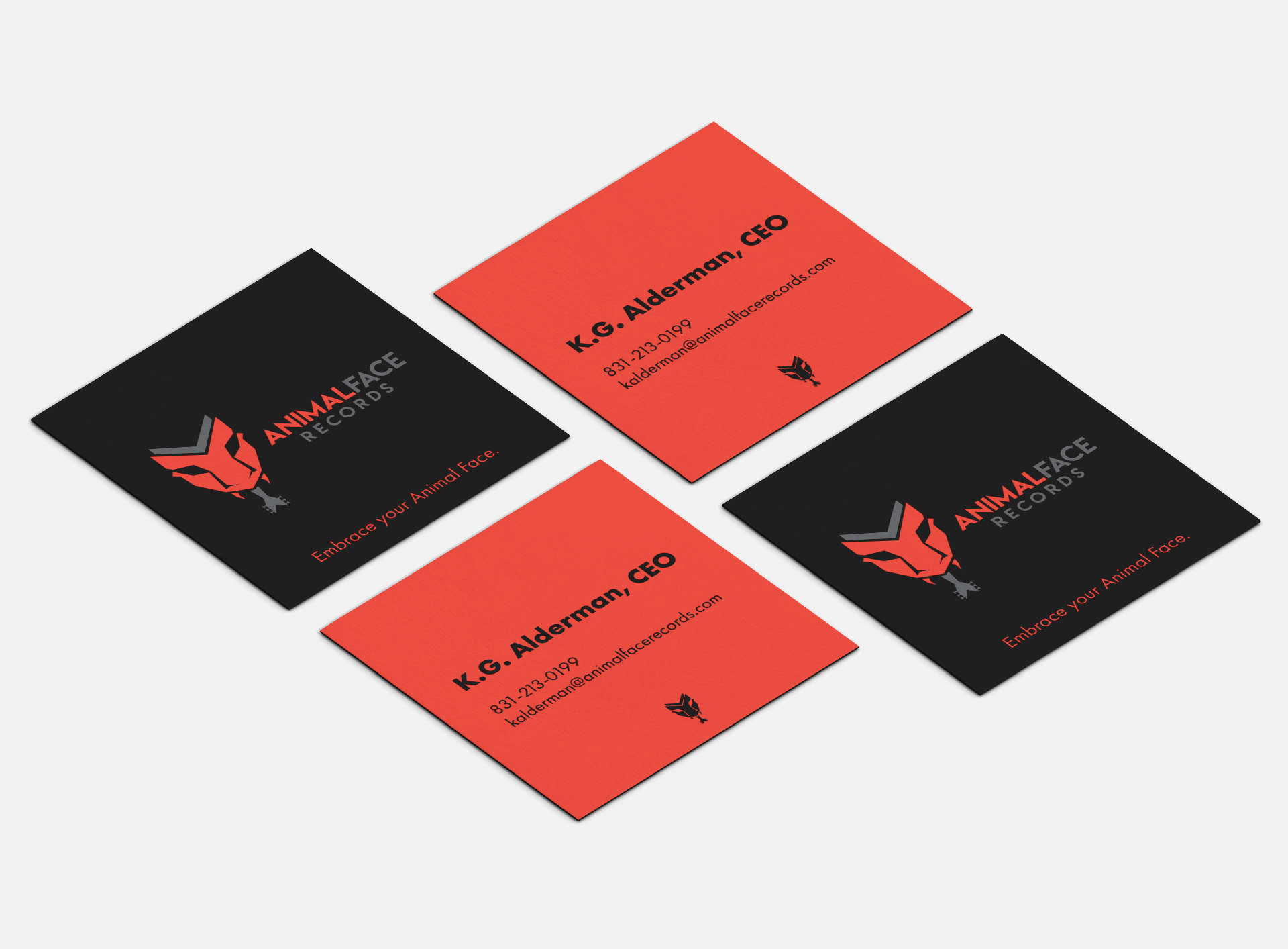 Animal Face Records is a fictitious record label that is all about being bold and standing out. The name “Animal Face” came from a band I was once in and I wanted to honor it through this branding. Having an “Animal Face” would almost be like “putting your game face on” and being able to do anything and take risks that you won’t normally take. I want the listeners of this label to feel like that.
